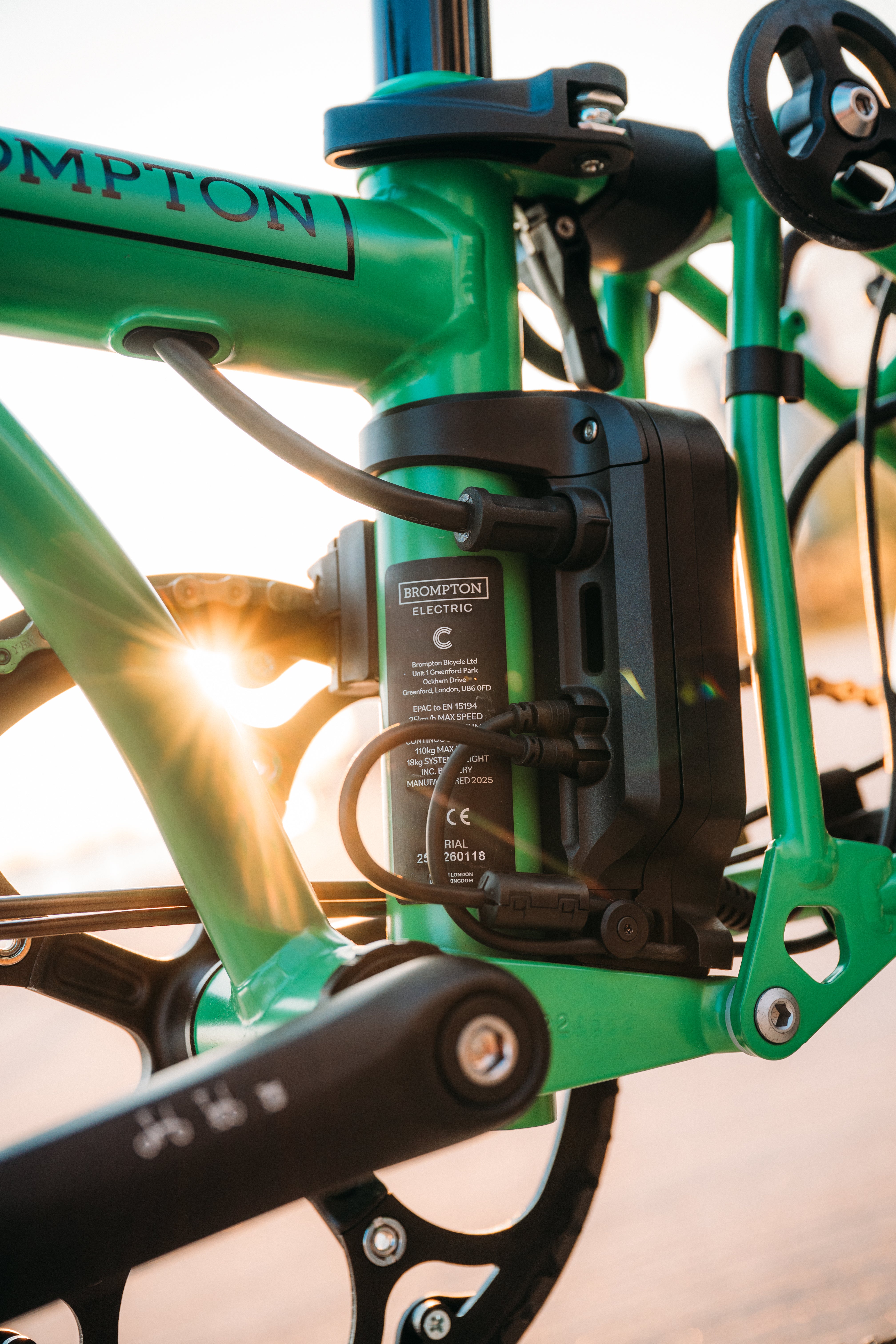 Das e-Motiq System basiert auf dem Erfolg der Brompton Electric G Line, die 2024 lanciert wurde. Das System wurde so weiterentwickelt, dass es den Anforderungen unserer 16" Modelle (C, P und T Line) gerecht wird und bietet mehr Leistung, intelligentere Steuerung und ein perfektes Fahrerlebnis.