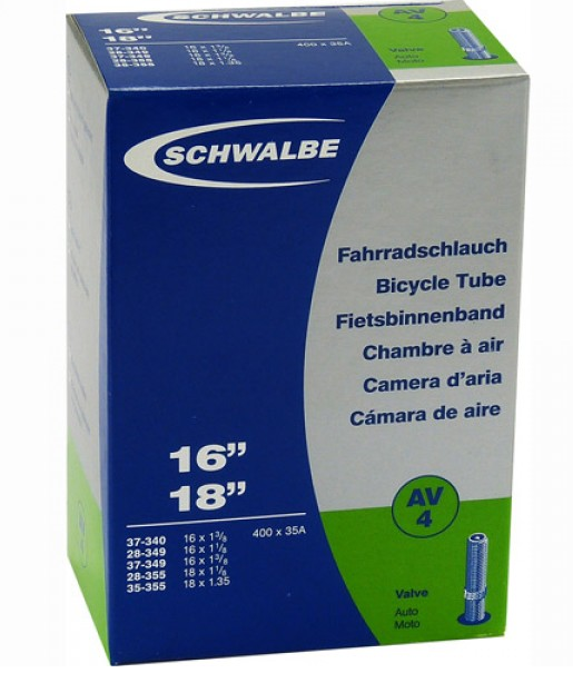 Schwalbe AV 4: Der richtige Schlauch für alle Brompton der Modellreihen C Line und P Line (Ausnahme: P Line Sondermodelle). Schwalbe bietet das perfekte Maß in der bekannten Qualität. Komplett mit Autoventil, Kontermutter und Ventilkappe.